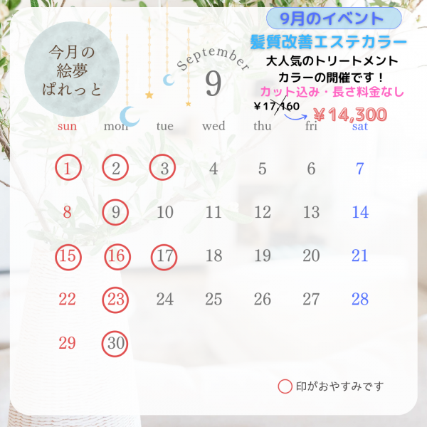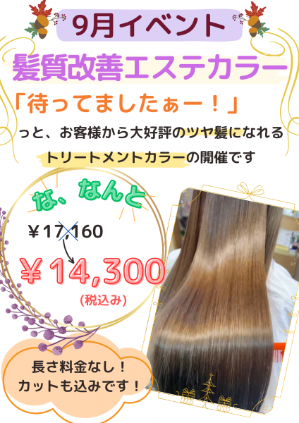 9月イベントは、「髪質改善エステカラー」