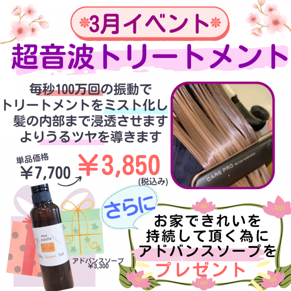 「超音波トリートメント」で更にツヤ髪に天使の輪を追加してみてはいかがでしょうか??