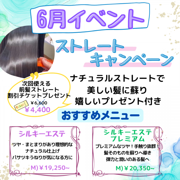 6月イベントは…シルキーエステ(ナチュラルストレート)