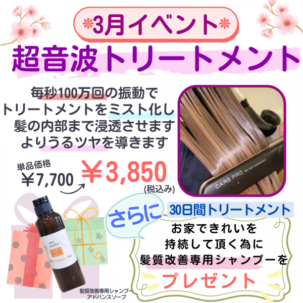 「超音波トリートメント」¥3,850での開催です!!